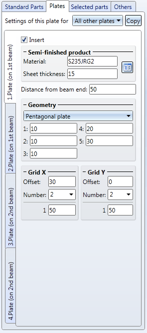 Use this tab to determine if you want to mount any plates to the bracing members, and, if so, to additionally specify the plate type. if you do not want a plate to be fitted, simply deactivate the corresponding checkbox.