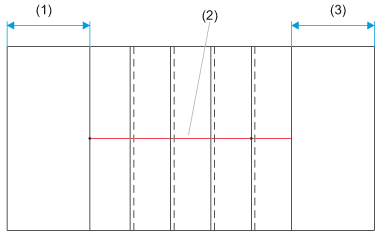 Stair contour with steps (top view), (1) Distance from stair start, (2) Tread lines, (3) Distance from stair end