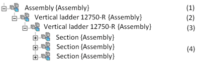 The vertical ladder will be fitted into the drawing as an assembly. Each of these assemblies has the following structure: