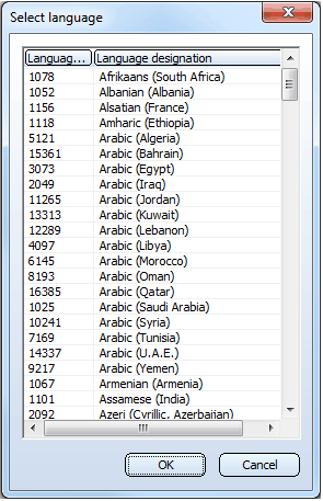 If the variant file you want to load contains no language information (this applies, e.g., to VAD files), a dialogue for the selection of a working language will be displayed.