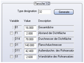 In this case, the variables of the part Flange 3 take over the values belonging to the corresponding variables of the part Flange 1/2 in the same record. This convention applies to all records belonging to the variant.
