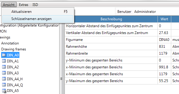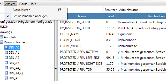 HiCAD uses the key name to access the settings of the configuration management. The key name is identical in all languages.