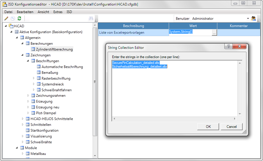 We recommend that you create your own template files by copying and editing one of the supplied ISD templates. The templates need to be stored in the HiCAD directory templates\... in order to be displayable in the Configuration Editor.