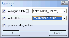 - For the catalogue attributes Catalogue name and Table name, optional attribute assignments are possible via HELiOS Part Management, which provides the HELiOS user with information. Use the HELiOS Settings function to specify such assignments.