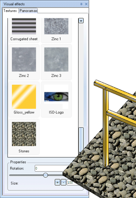 When you restart HiCAD, the new textures will be available in the Visual effects docking window.