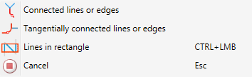 After calling the function, identify the selected line/edge or use the functions of the context menu for selection. You open the context menu with a right-click during the selection process.