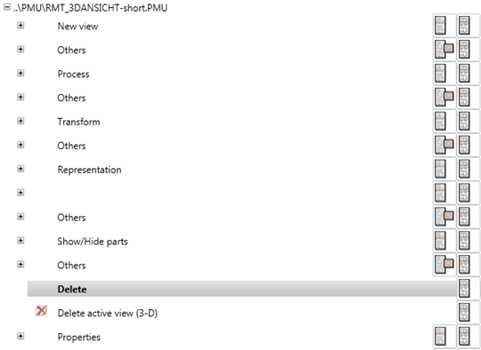 • Particular buttons or further menus are assigned to items that begin with a . Clicking the expands the item and lists them.