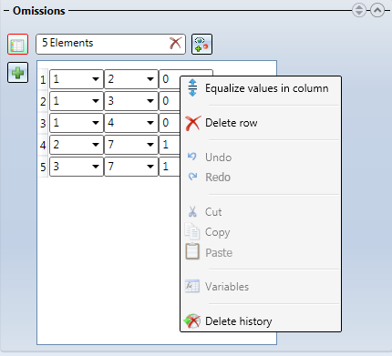 - Equalize values in column: Copies the value of the clicked entry to all entries in the same column.