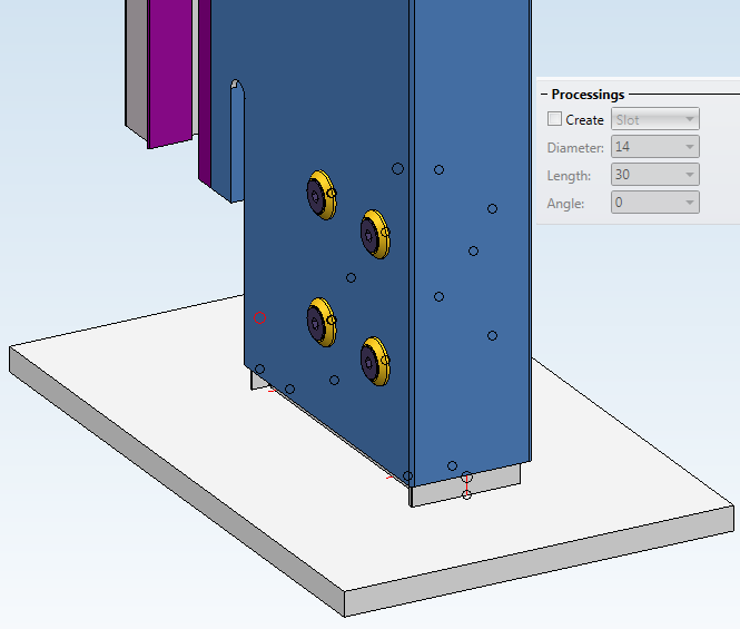 Beneath Process you can change the Length and the Angle of the slots on the Beam and the Connector. Further down you can find a Bore grid menu where you can change the Number of bores and the Distance between them.