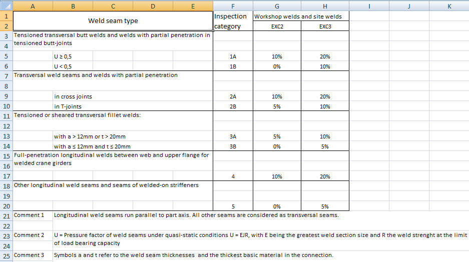 The Weld seam test protocol sheet contains, for each execution class and inspection category, the total length of the corresponding weld seams, thus enabling a determining of the scope of the test. The Scope of non-destructive test sheet contains the legend with the plain texts for the abbreviations of the inspection categories. The Excel file will be saved to the same directory and with the same name as the current drawing file. The file extension is .Script.G.XLSM.