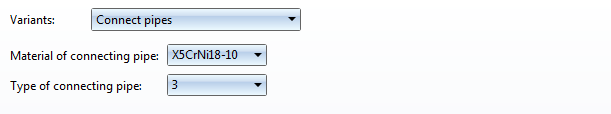 For the Connect pipes variant you need to choose the material for the connecting pipe and then its type. The latter determines the bend radius: