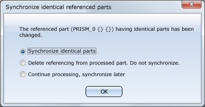 • During some operations you will only realize at the end that a referenced part was changed. In such cases the following message will be shown: