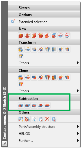 When you call one of these functions via the context menu, the superordinate solid will be processed.