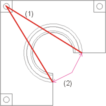 (1) Original with sketch, (2) Sectional view without section path and annotation |