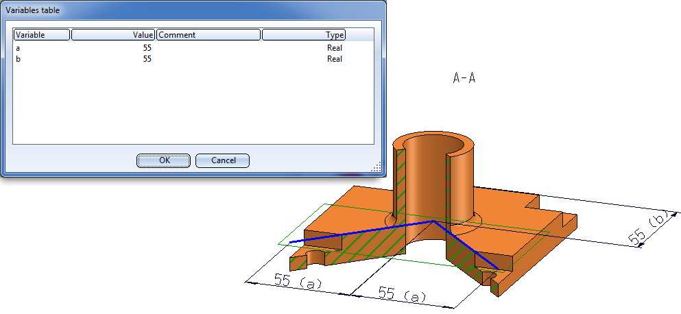If you now change the variables, the sectional view will be automatically adjusted, while the sketch remains unchanged.