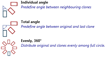 - Total angle: The specified value is the complete angle between the "first" and the "last" clone. The remaining clones in between are evenly distributed.