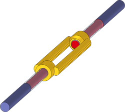You can use a turnbuckle, for example, to tension cables. Turnbuckles can be fitted in HiCAD with or without welding ends. The following turnbuckles are available: