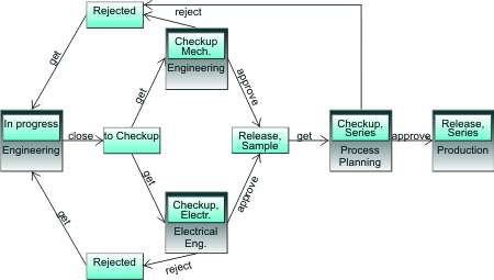 - Grant and withdraw rights and functions for PDM objects (documents, projects, articles etc.)