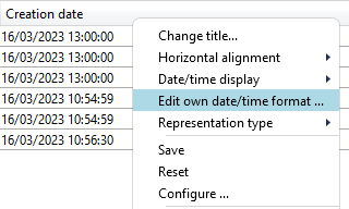 If you have changed the display for the column to your own time format, you can edit it by clicking on Edit own date/time format... in the same context menu: