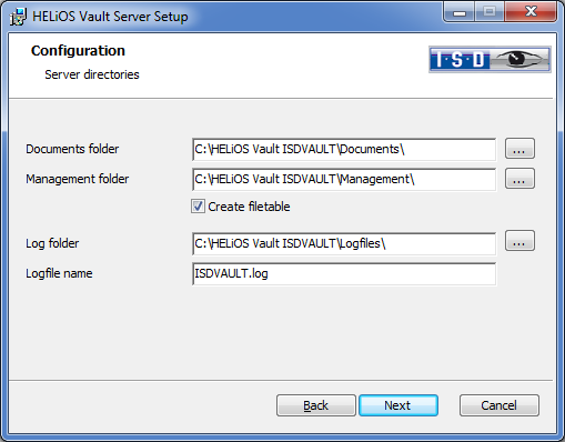 In the next dialogue window the Server directories are specified.