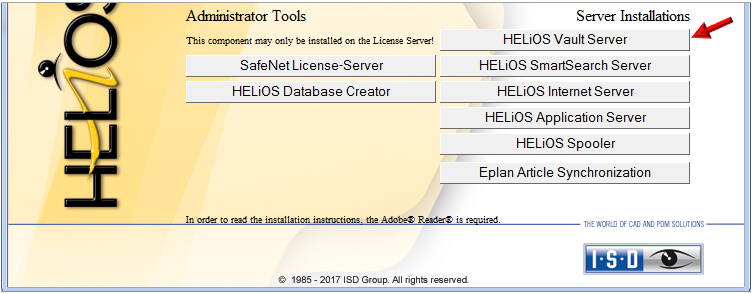The installation of the Vault Server takes place via the HELiOS Installation DVD. In the installation selection mask, click the HELiOS Vault Server button.