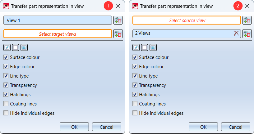 symbol. If the initial view is correct, select the target views, i.e. the views for which the properties of the initial view are to be applied. If an already selected target view is selected again, it will be removed from the selection list.