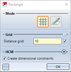 The rectangle is immediately inserted into your drawing. The dialogue window remains open for the construction of further rectangles (of the same sketch).