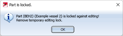 HiCAD offers the possibility to lock parts for other users; for example to protect it from accidental changing of parts. These parts are marked with a corresponding symbol