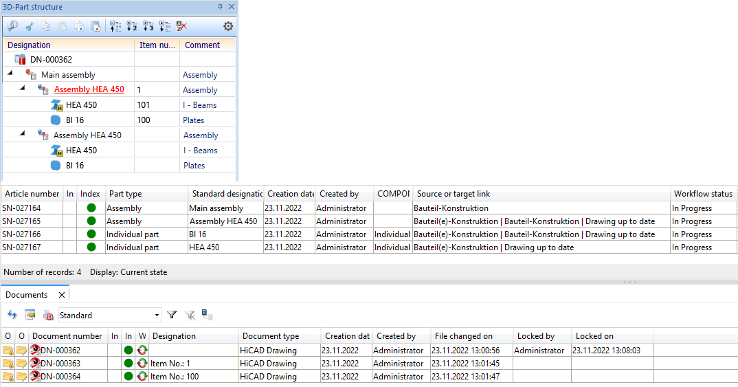 - Now the beam is changed in the derived assembly, the assembly is itemised and the model drawing is saved. Then the production drawings are created.