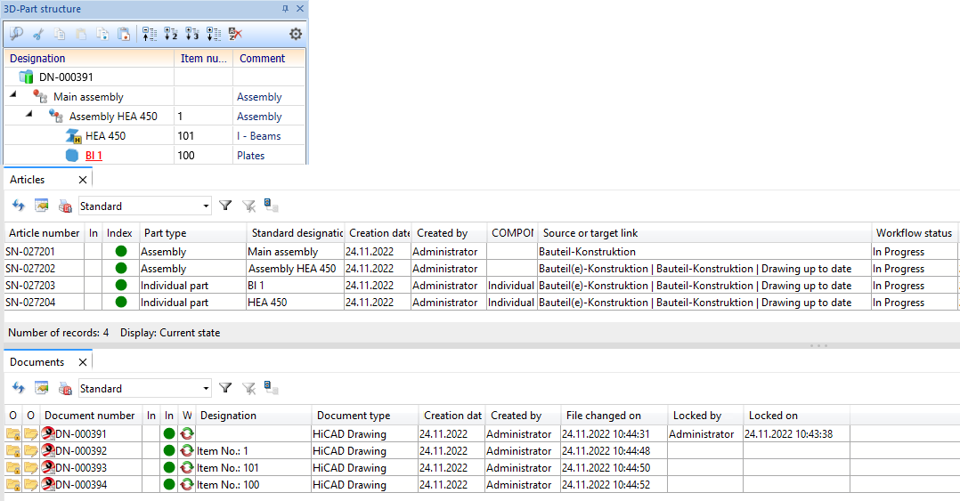 Derive article master selected via HELiOS, incl. sub-parts and linked drawings