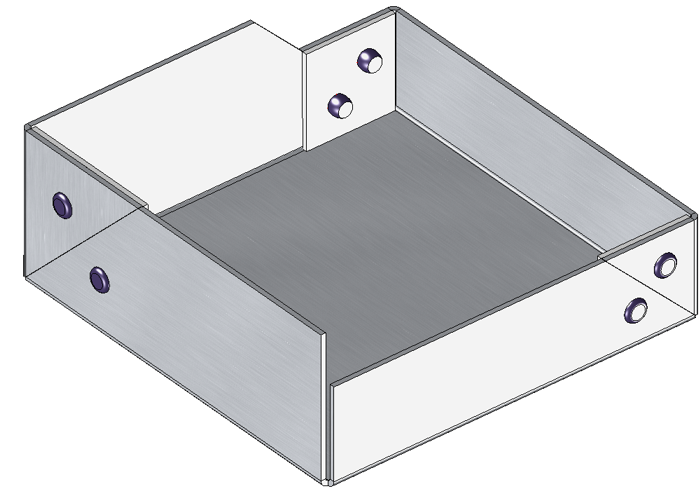 Use this Design Variant to create a sheet corner with or without stiffener between 2 flanges. The flanges can have different lengths and different bend angles.