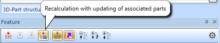 - To update connections, you can also use the feature function Recalculation with updating of associated parts