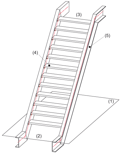 Stairs with stairwell contour : (1) Sketch, (2) Stair start, (3) Stair end, (4) Step, (5) Stringer