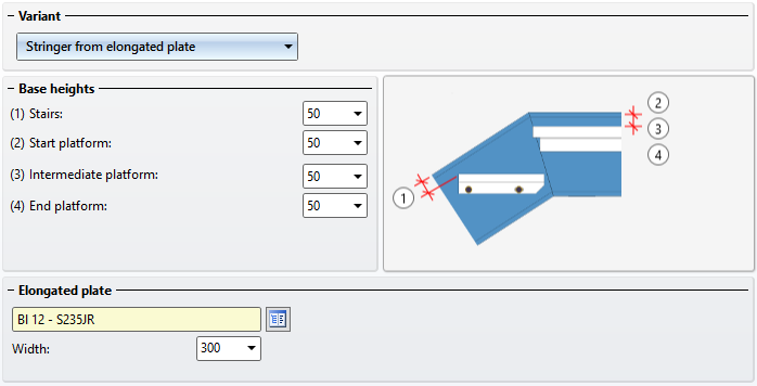 If you choose "Entrance stringer with pillar", the height of the pillar will be automatically calculated automatically, based on the value for the unfinished floor.