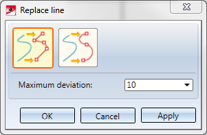 Select the desired approximation type: Replace with straight lines or Replace with circular arcs. Specify the Maximum deviation of the replacing element from the original element.