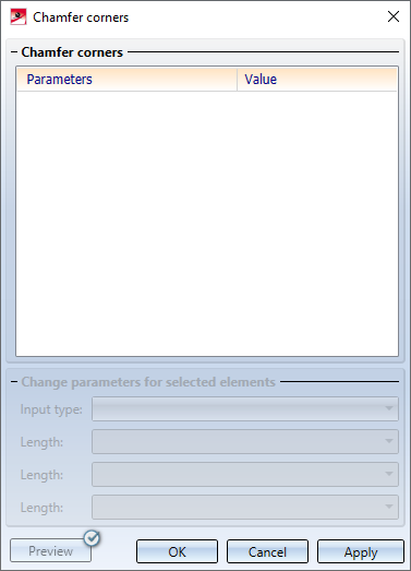 All selected corners are chamfered with the values specified under Change parameters for selected elements when clicking the OK button.