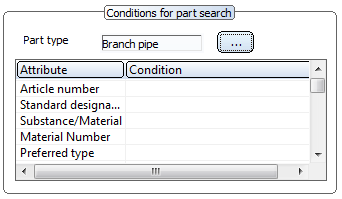 You have the option to set filters for part search by specifying particular search criteria. To assign a search criterion to an attribute, double-click the corresponding row in the Conditions column and enter the search criteria. Please note the rules for part search.