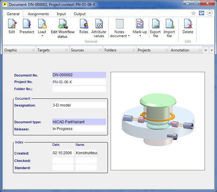 If the chosen document is a CAD file, the Mask tab shows you the most important entries in a preview, e.g. of the model drawing graphic.