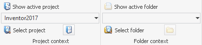 In the HELiOS menu for Parts, Assemblies or Drawings contains various functions for a working with Projects and Folders in the two function groups Project context and Folder context:
