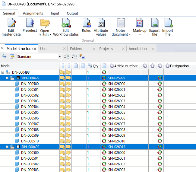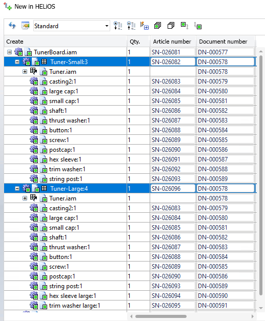 The number of part occurrences can therefore be lower for individual configuration sub-types than in the Factory. However, this should be completely "checkmarked" for the transfer with New in HELiOS.