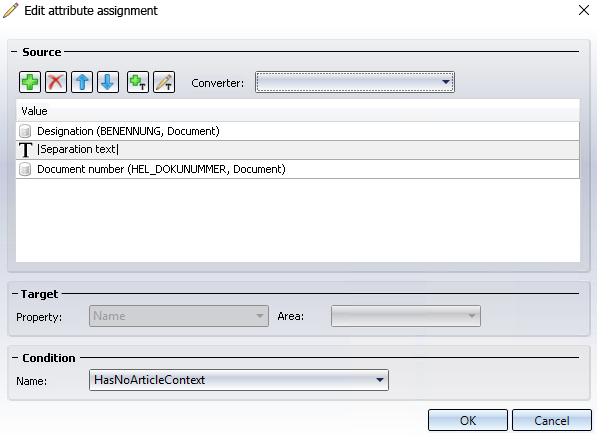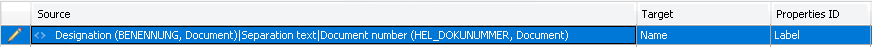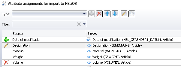 In the Source column you can see the CAD attribute, and in the Target column the corresponding attribute of the HELiOS database which will be synchronized with this attribute.