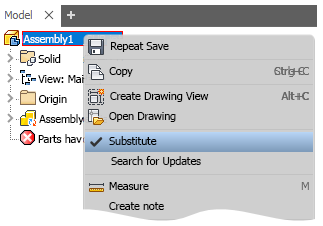 The Inventor function Create derived substitutes creates a substitute part (IPT file) for sub-assemblies of the first level, which is marked as substitute in the superordinate assembly and displayed in a lower level of detail.