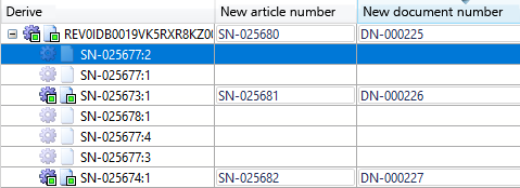 When marking the documents and articles for derivation, the generation of the designations will in all three cases be carried out in the order in which the individual elements were clicked (and not, for instance, according to their hierarchical position).