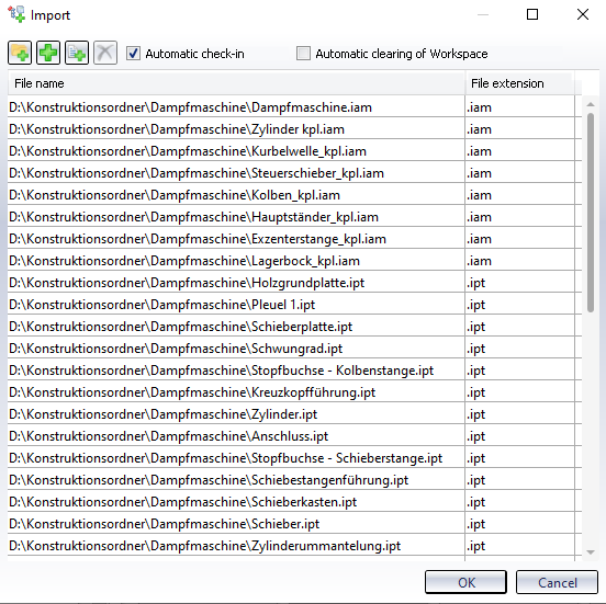 All .ipt and .iam files located in the chosen directory will then be listed in the Import window.