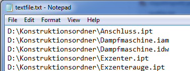A prerequisite for this is that the corresponding files in the text file (the extension of which are irrelevant) are listed with their full and correct system path and file names in separate rows.