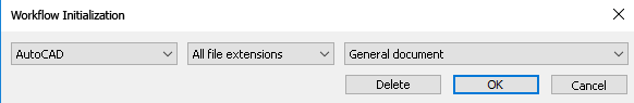Choose All file extensions if you want the same Workflow to be assigned to all AutoCAD file types. However, you can also define the assignment in the pull-down menu for a particular file type.