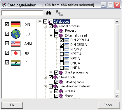Your selection made with the Catalogue Maker will be considered both in the catalogue maker and in HiCAD. This can also be useful if you require certain standards, processings etc. only. You are thus enabled to restrict the standards offered for selection.