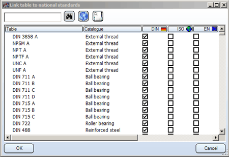 This function can be used to create new country standards, but is also useful if you want to save certain tables with company-specific standards. This could be, for example, the tables of frequently used standard parts. Afterwards you are enabled to select exactly this company-specific standard with the Catalogue Editor as a collection for HiCAD.