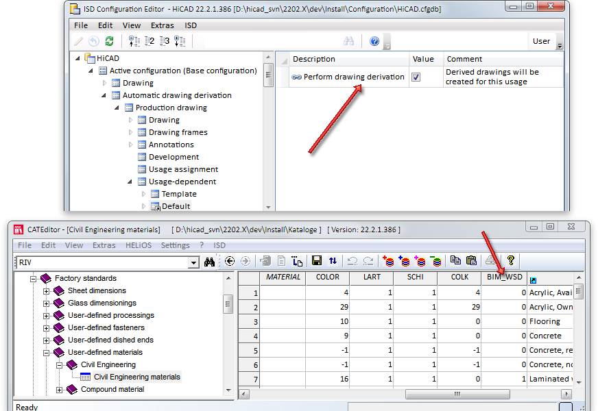 When using Civil Engineering Materials the execution of drawing derivation is not only dependent on the usage of the part but also on the settings in the column BIM_WSD.