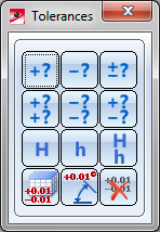 The first three tolerances correspond to the three upper buttons in the Tolerances dialogue that you can call via 2-D Dimensioning + Text > Edit > Aux.text